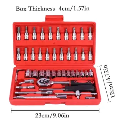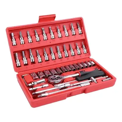 Potente y versátil Kit de Herramientas de 46 Piezas, ideal para el mantenimiento del coche. Con herramientas multifuncionales, este conjunto está fabricado con materiales de alta calidad para asegurar durabilidad y resistencia.