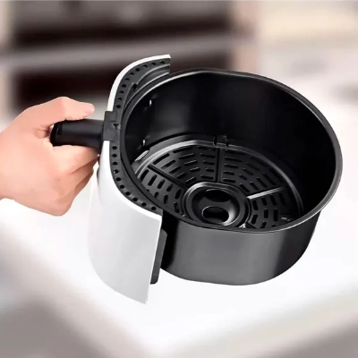 El interior de la freidora está revestido con teflón antiadherente, lo que facilita la limpieza y asegura que los alimentos se cocinen de manera uniforme. Además, la rejilla interior es desmontable y apta para lavavajillas, simplificando aún más el proceso de limpieza.