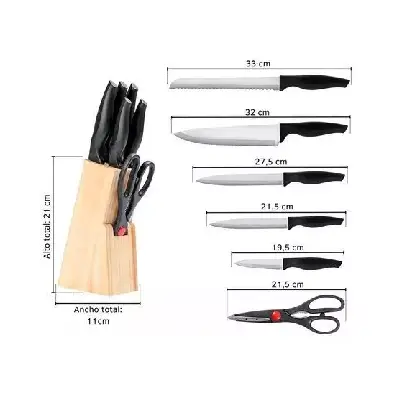 Este práctico set de cuchillos Brinox de 7 piezas es ideal para equipar tu cocina con herramientas versátiles y duraderas. Incluye cinco cuchillos de distintos tamaños y funciones, unas tijeras multiusos y un elegante bloque de madera para mantener todo organizado y al alcance de la mano. Sus mangos ergonómicos ofrecen un agarre cómodo y seguro, mientras que las hojas de acero inoxidable garantizan un corte preciso y duradero. Perfecto para preparar desde frutas y verduras hasta carnes y pan.
