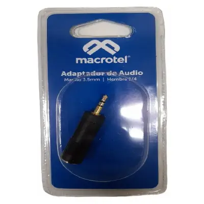 El adaptador de audio 6.3 mm hembra a 3.5 mm macho permite conectar audífonos o cables con conector grande tipo jack (1/4”) a dispositivos con salida de audio estándar de 3.5 mm, como celulares, laptops, consolas o reproductores.