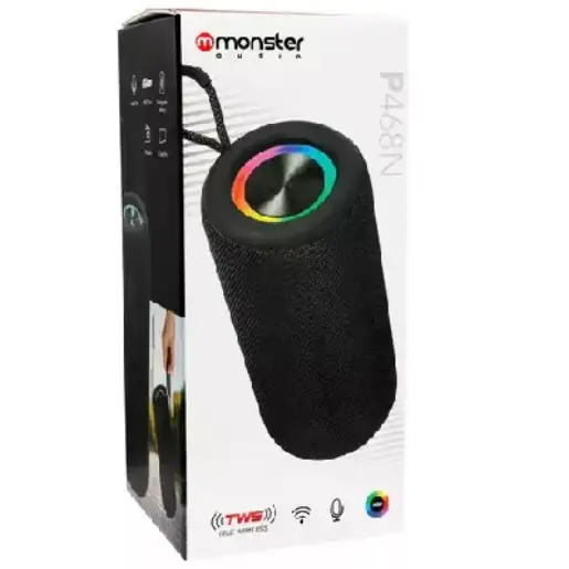 El Parlante Monster Audio P468N TWS es el compañero perfecto para tus reuniones, viajes o simplemente para disfrutar de tu música con estilo y calidad. ¡Lleva la fiesta contigo!