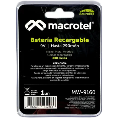 Esta pila Macrotel te garantiza que tendrás energía en la que puedes confiar, tanto si te estas preparando para esa tormenta que se ve en el horizonte o simplemente deleitando a tus hijos con un juguete a control remoto ¡Tendrás energía en todo momento!