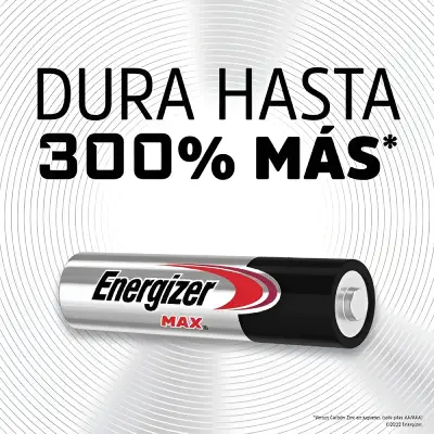 Pila alcalina AA Energizer, ofrece la energía eléctrica adecuada para el buen funcionamiento de aparatos eléctricos portátiles. Está diseñada para mantener su potencia hasta por 10 años en almacenamiento; se puede emplear en controles inalámbricos, juguetes, mouse de computadora y cualquier otro artículo que sea compatible con el tipo AA. Su tecnología Powerseal evita que se derrame dentro de los dispositivos en los que se coloca. La tira incluye 12 piezas